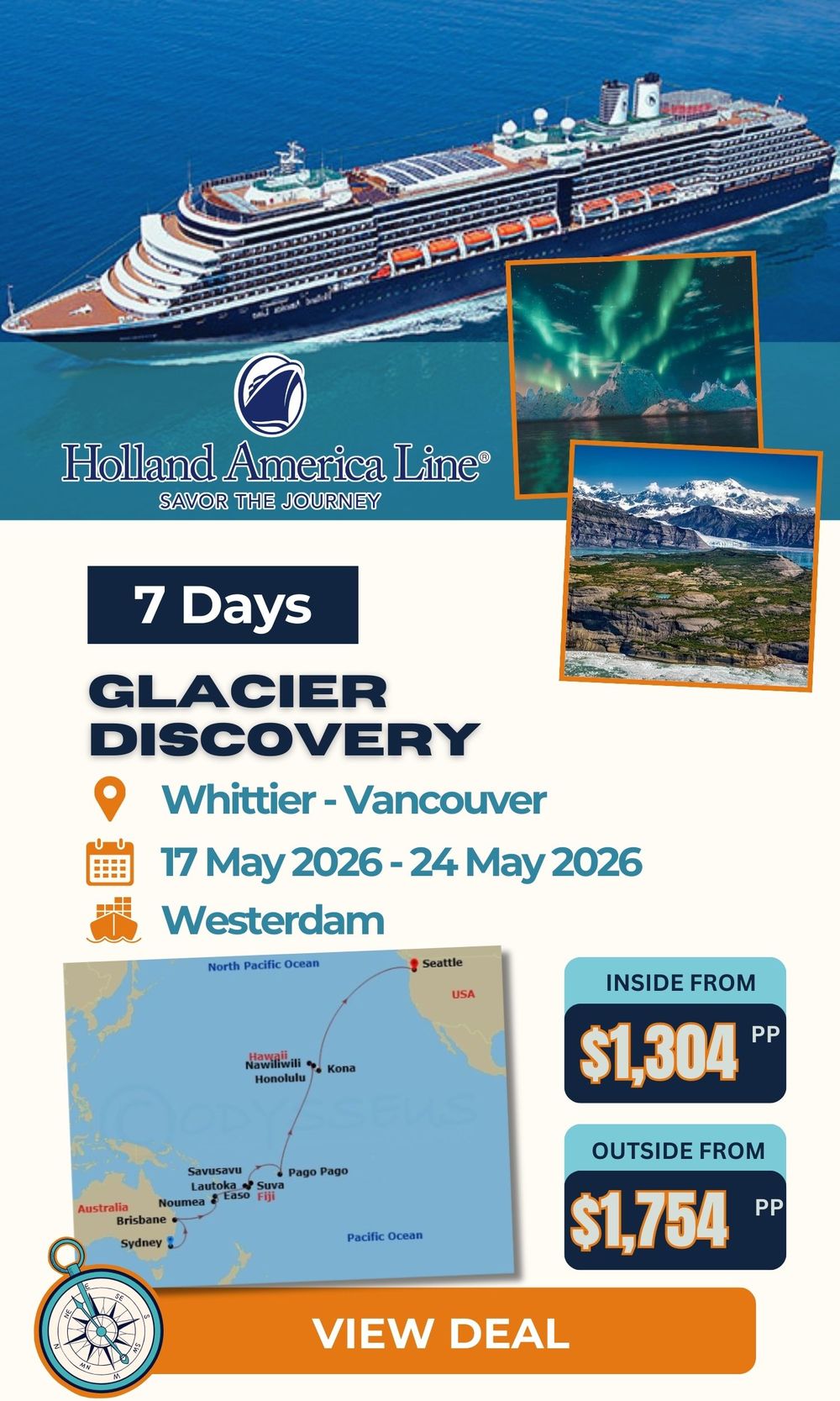 surprise. All you need to do is trust the sail, let the journey unfold, and savor what’s in front of you. Because with Holland America, the best voyages aren’t rushed—they’re relished, moment by moment.